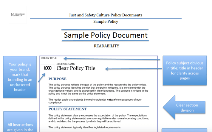 READABILITY: When you create or redesign your policy, consider the readability and human factors discussed in “And the Winner is…”. Here is a sample policy template with a focus on readability.